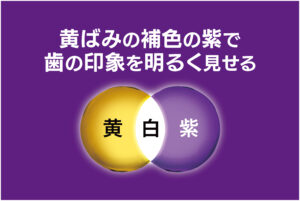 紫は黄色の補色です。黄色みが気になる部分に紫を重ねると、色味が打ち消し合い、トーンが明るく見える“色補正”が起こります。